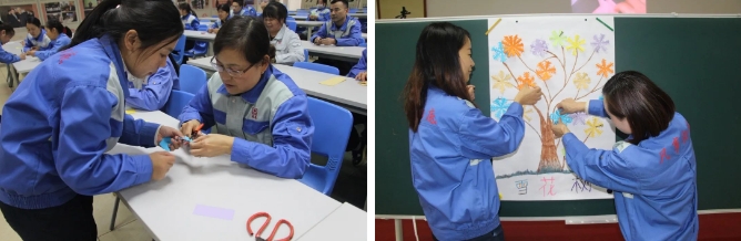 在创意指尖的环节,大家认真跟着视频学习。这不,家人们用剪刀剪出了心中期盼的雪花,还不忘和身旁的家人一起分享方法,互帮互助。最后,带着祝福将雪花们汇聚成树。