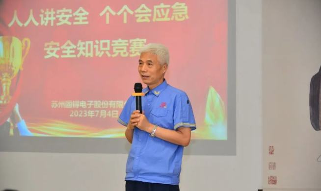 在安全知识竞答环节,谢总监鼓励参赛选手答出好成绩,并让掌握的安全知识为和谐的工作环境和美好的家庭生活保驾护航。