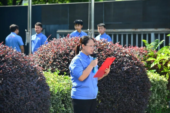 6月28日,迎着清晨的朝阳,各部门家人在总厂及IC厂门卫集合,举行庄严而又隆重的升国旗仪式。