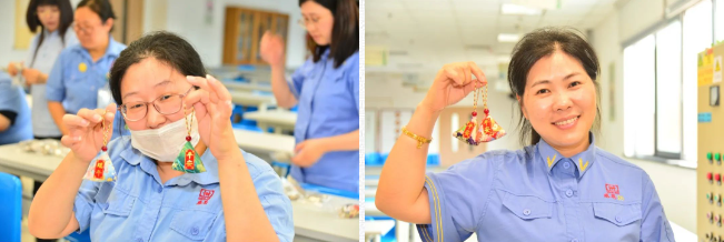 再用彩珠对香包进行装饰……不一会儿,香气馥郁、造型独特的香包接连呈现在面前。看着自己亲手做好的香包,家人们乐在心里,喜上眉梢,一个个爱不释手,欣赏个不停。