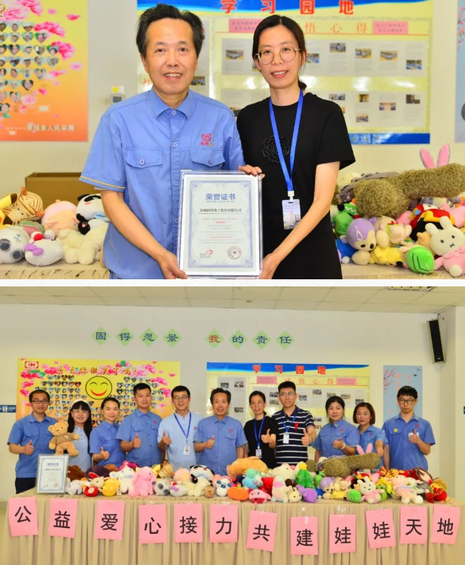 近日,以“公益爱心接力,共建娃娃天地”为主题的毛绒娃娃捐赠活动在公司幸福餐厅举行。一个娃娃,就是一个孩子的快乐。或许再也回不去孩童时代,但我们却可以重温当年的美好回忆,将心中的爱与善意传递!