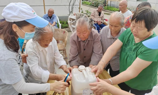 看着自己亲手制作的酵素,爷爷奶奶们激动地说:“没想到做酵素这么简单,以后家里的剩菜叶、水果皮不再扔掉,可以拿来做酵素。”