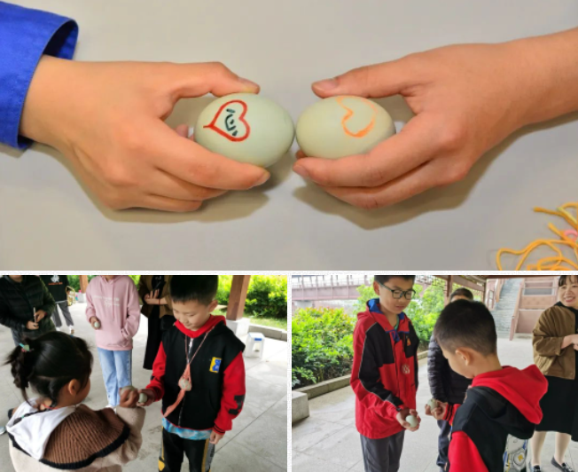 激动人心的时刻到了!“斗蛋”比赛开始了!用鸭蛋互相碰一碰,斗一斗真有趣。“砰砰”声过后,蛋完好无损的继续再战,直至最后成为“蛋王”。