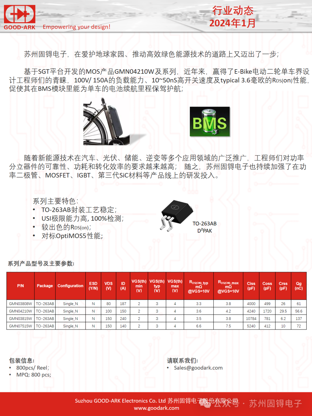 苏州固锝电子的SGT MOS为电动单车的续航里程保驾护航