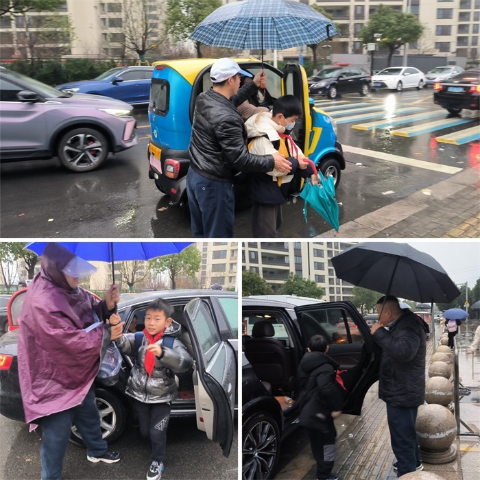 无私大爱,无悔付出,春风十里,不如护学有你。淅淅沥沥的春雨丝毫未影响,志愿者们坚守护学岗,疏导人流,引导孩子们进校园……辛勤的身影与车水马龙的街道形成了一道亮丽的风景线。