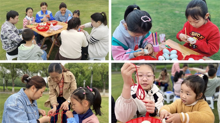 “立夏胸前挂蛋,孩子不疰夏”,民间有立夏吃蛋,强身健骨的说法。固锝家人每到这个时候,就会开展编蛋兜、绘彩蛋的活动,在活动中感受中华优秀传统文化的独特魅力。七彩的绳线,寓意健康幸福;圆溜溜的彩蛋,祝愿平安圆满。
