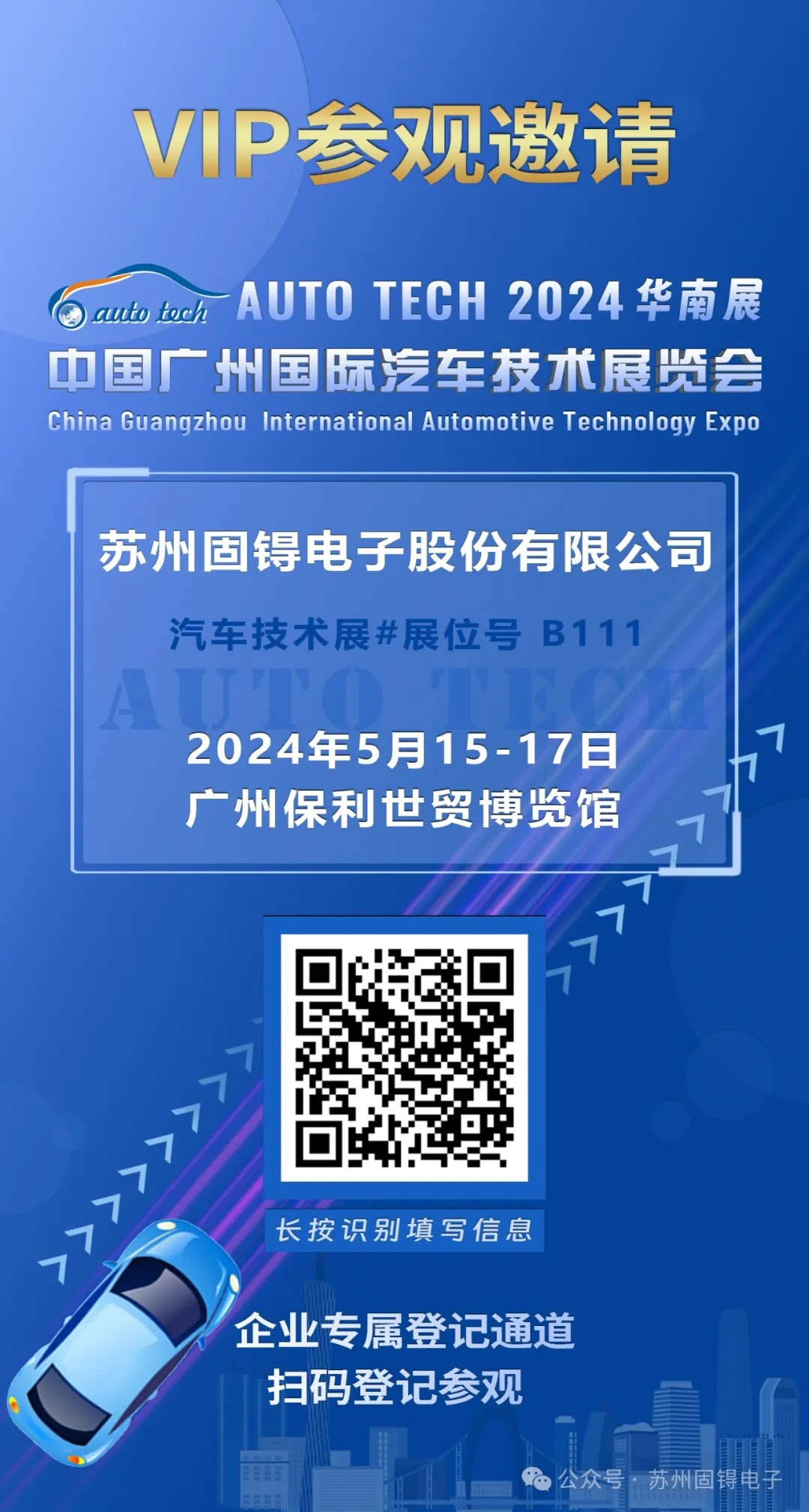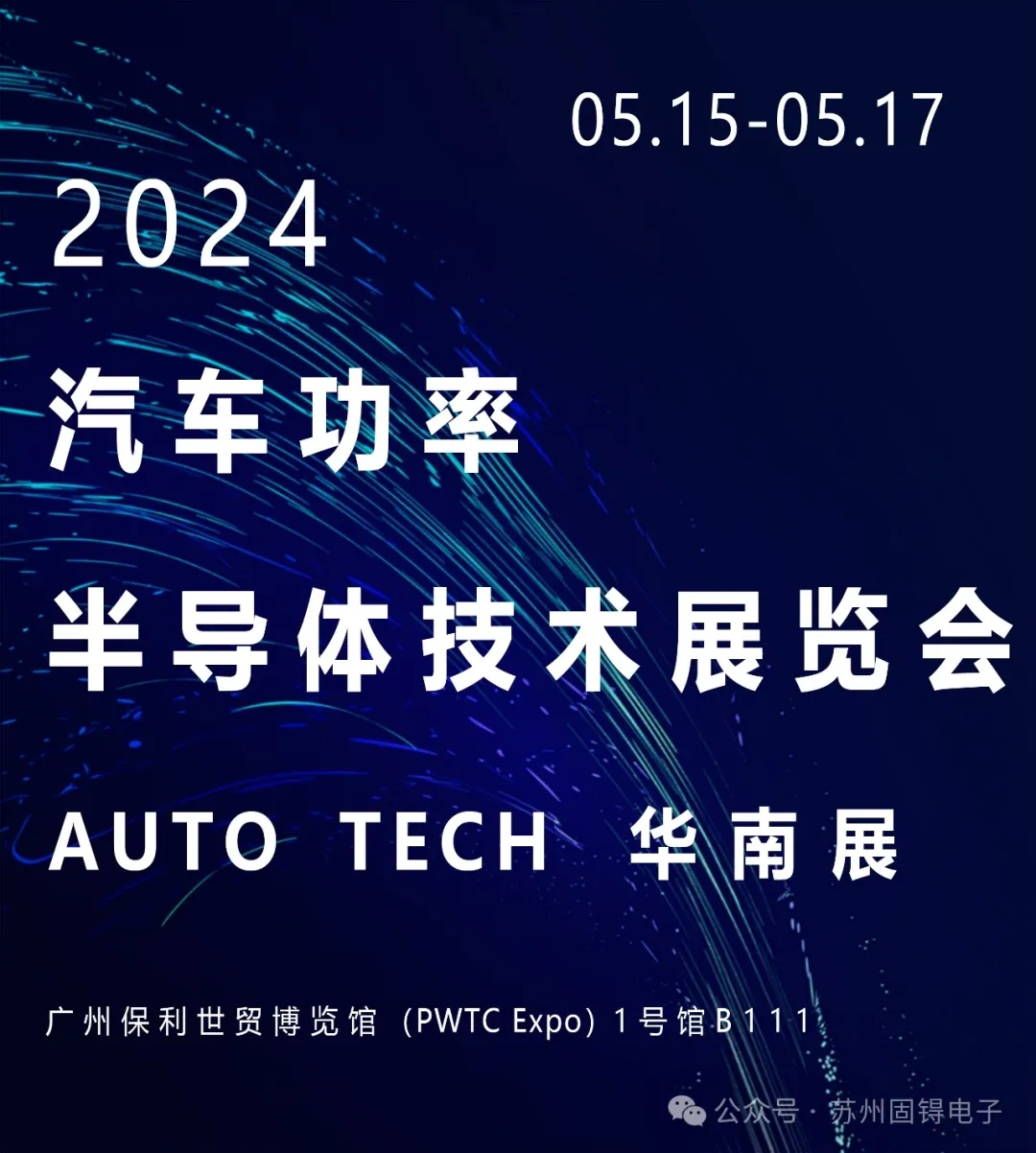 我们诚挚地邀请您参加即将于5月15日至17日在广州保利世贸博览馆(PWTC Expo)隆重举行的AUTO TECH 2024 广州国际新能源汽车功率半导体技术展览会,苏州固锝将携其最新技术成果和产品亮相此次盛会,与业界同仁共襄盛举。