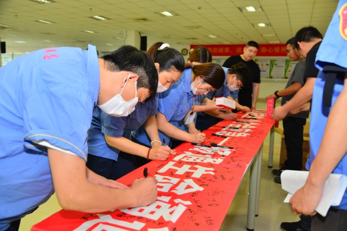 家人们走进幸福餐厅,参加EHS组织的“安全生产月”签名活动,一个个签名,是员工在心中立下的承诺,是大家履行“人人讲安全、个个会应急——畅通生命通道”的决心。