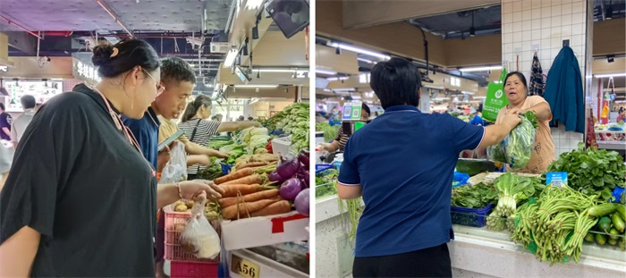 一大早志工们便来到菜市场采购叔叔阿姨们爱吃的蔬菜、水果。长辈们听到我们要来,非常高兴,早早便在等待,像期望自己久违的孩子一样站在门口望着。