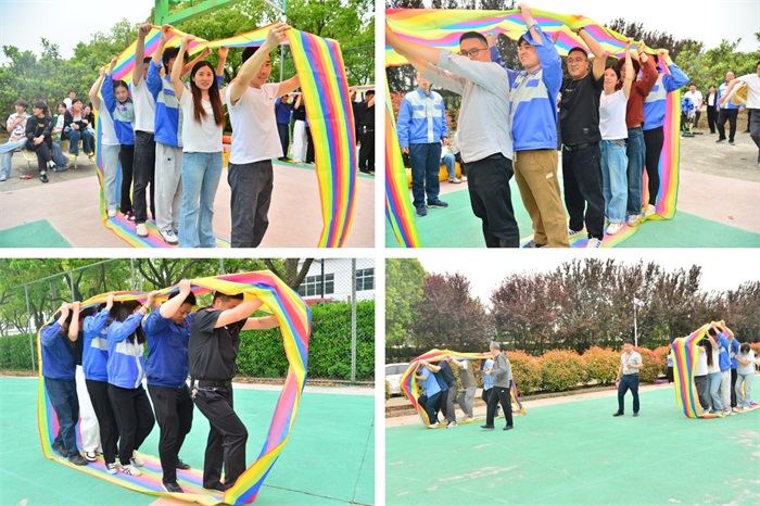 紧接着,“无敌风火轮”项目将现场气氛推向了另一个高潮。各团队成员需共同进入一个巨大的“风火轮”中,通过默契配合,让这个由布条组成的“巨兽”缓缓前行。这不仅仅是对个人体力的挑战,更是对团队协作能力的极致考验。大家手脚并用,用汗水和笑声编织着团队的力量,每一次成功的前进都凝聚着团队的智慧与努力,证明了“无敌风火轮”转动的,不仅是前进的步伐,更是团结一心的信念。