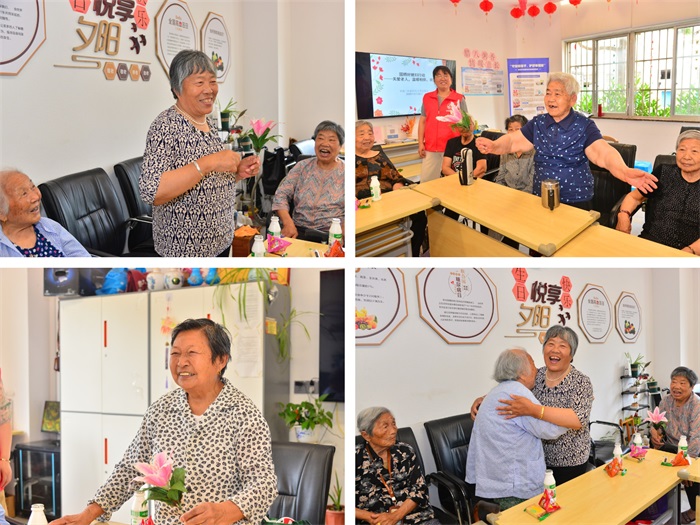 欢乐的时光悄然开启,互动游戏环节瞬间点燃了现场的气氛。“击鼓传花” 的游戏中,随着欢快的音乐响起,鲜艳的花朵在一双双手中快速传递。当音乐戛然而止,手持花朵的长辈,或是一展歌喉,唱起记忆深处的老歌;或来四句快板说词;或给同伴一个拥抱,赢得阵阵热烈的掌声。那一张张洋溢着幸福的笑脸,仿佛让时光都慢了下来。