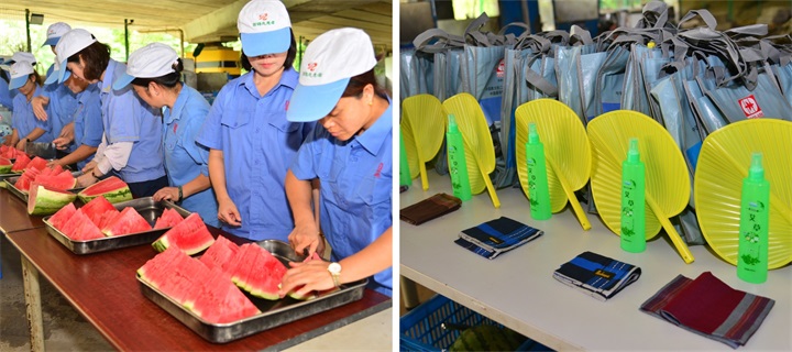 为了向这些城市美容师表达谢意,在酷暑来临之际,志愿者们怀着满满的爱心来到通安镇环卫工人临时集合点。到达后,大家立即分工协作:有人仔细摆放清凉物资,像准备珍贵礼物般认真;有人熟练地切着西瓜,精心倒好酸梅汤,专注的神情仿佛在完成一件艺术品。
