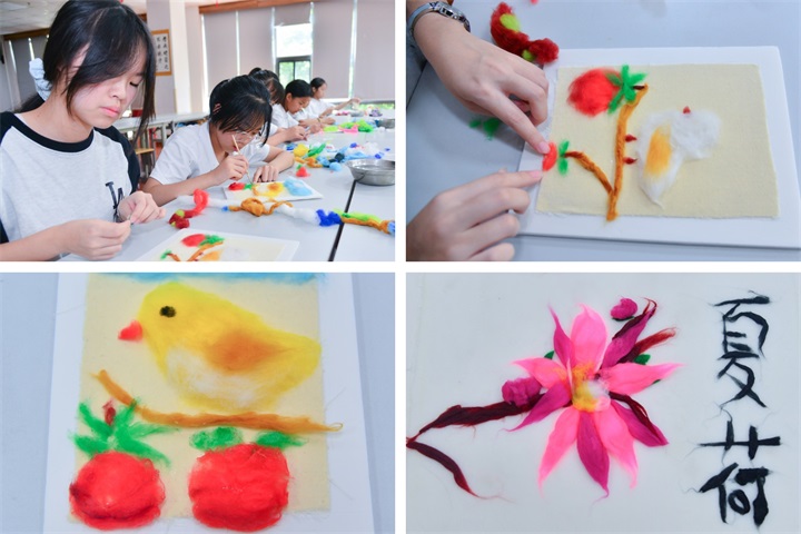 如果说课堂是成长的土壤,那特色课程就是最灿烂的阳光!书法课上,墨香里飘着 “慢慢来” 的温柔;舞蹈课上,大家踮脚转圈,裙摆飞扬间跳出童年的灵动;美术课上,五彩斑斓的画笔描绘出心中的梦想;扎染课上,各种素材在染料里晕染出惊喜;丝画课上,每个孩子都捧着独一无二的 “彩虹作品” 骄傲展示。