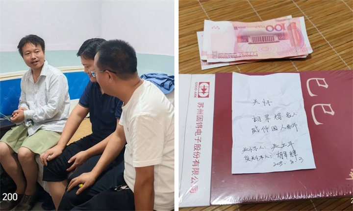 公司很快知道了他的情况。企业文化部吴卫平专程上门,带着公司的一份温暖——“急难关怀金”,第一时间送到了胡军辉手中。