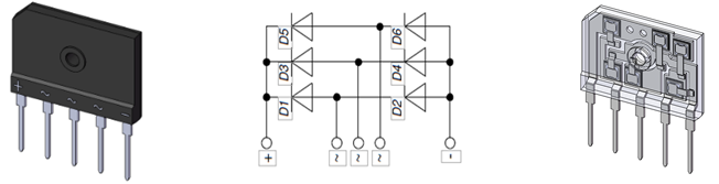固锝SGBJ系列三相整流桥由六只整流二极管按桥式全波整流电路的形式连接并封装为一体,可以将三相交流电转换成直流电,具有优良的特性,广泛应用于开关电源、家用电器、工业自动化设备、电焊机的交直流桥式全波整流。